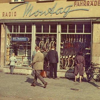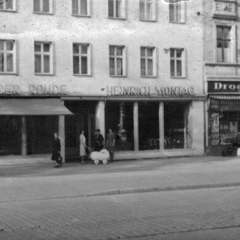 Der Kaufmann Heinrich Montag (geb. 23.10.1906) gründete am 23.09.1926 sein Geschäft für Fahrräder, Motorräder und Nähmaschinen in der Braunschweiger Straße im Haus der Palast-Lichtspiele. Auf der gegenüberliegenden Straßenseite befand sich seine Werkstatt. Bis Ende der 90er Jahre war der Werbe-Schriftzug noch auf dem Gebäude zu lesen, welches heute leider abgerissen ist.