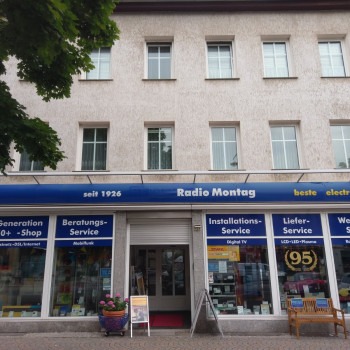 Schon 1928 erweiterte er sein Angebot um Radios. Von der Braunschweiger Straße zog Heinrich Montag 1936 in die Halberstädter Straße 124. Da vor dem Firmen-Namen "Montag" über dem Laden das Wort "Radio" stand, nennen es die Sudenburger bis heute "Radio Montag". Das Geschäft lief sehr gut, bis er 1940 seinen Einberufungsbefehl erhielt. In den ersten Kriegsjahren führte seine Frau Gerda Montag das Geschäft weiter, bis es, wie fast alle Geschäfte während des Krieges, geschlossen werden musste. Nach Kriegsende wurden die Verkaufsräume beschlagnahmt und ein Konsum zog ein. Nach seiner Rückkehr aus der Kriegsgefangenschaft 1948 gelang es Heinrich Montag einen kleinen Teil der Verkaufsfläche zurückzuerhalten und so konnte das Geschäft mit Zugang über den Hof wiedereröffnet werden.
